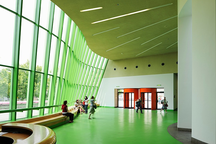 Einen Monat lang wurde gestrichen und gehämmert, wurden Bilder ab- und wieder aufgehängt: Am 12. September wurde die Stuttgarter Staatsgalerie wiedereröffnet, erneuert nach den Vorstellungen von Direktorin Christiane Lange. Wilford Schupp Architekten haben die Neugestaltung des Foyers der Neuen Staatsgalerie übernommen, das künftig wieder als Haupteingang dienen wird. "Es macht uns auch ein wenig stolz, dass wir wieder mitwirken dürfen", betont Architekt Manuel Schupp. Nicht nur der erneuerte berühmte grellgrüne Noppenboden steht nach der Wiedereröffnung im Mittelpunkt, auch neue Möbel wurden entworfen, wie u. a. ein kreuzförmiger Verkaufstisch für den neuen Shop und die Info- und Kassentheke im Rundbau.